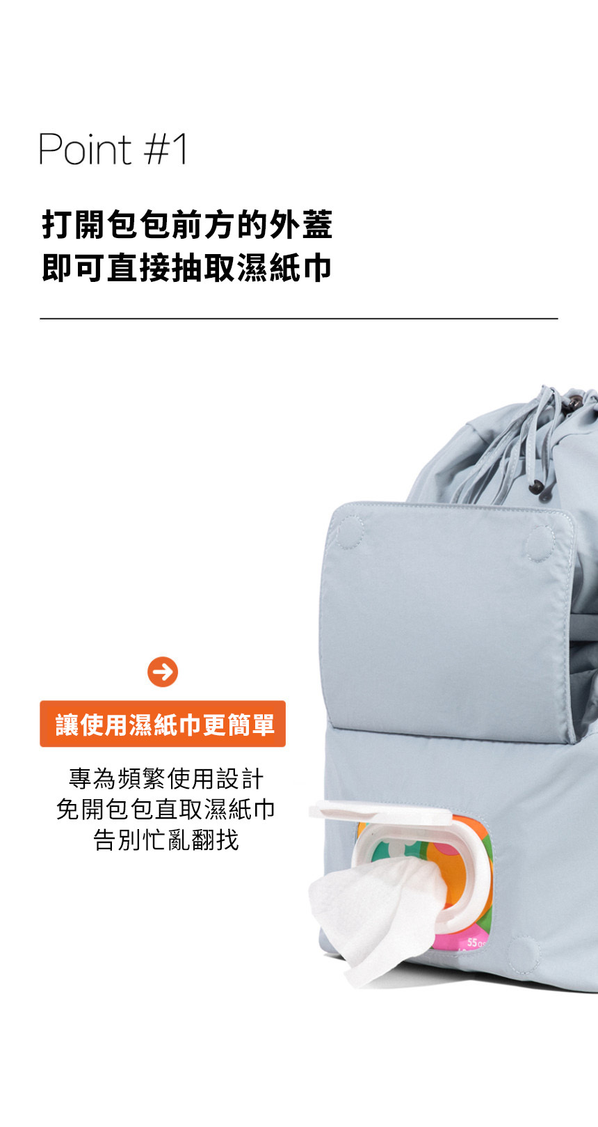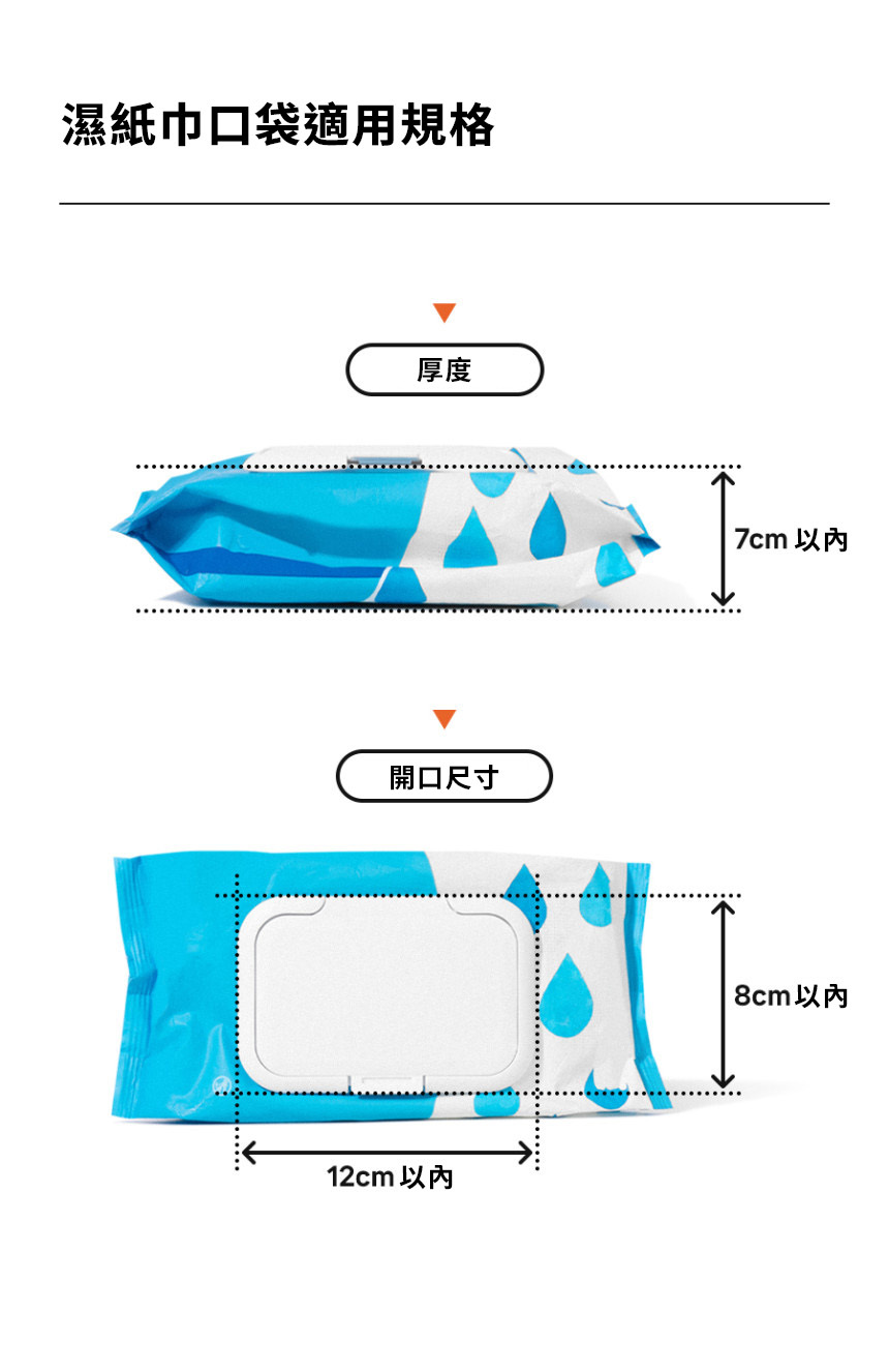 • 一秒快取:側邊專屬開口,可直接抽取濕紙巾