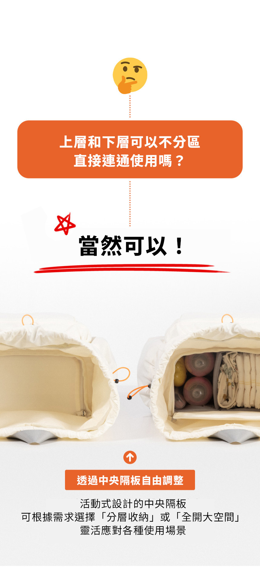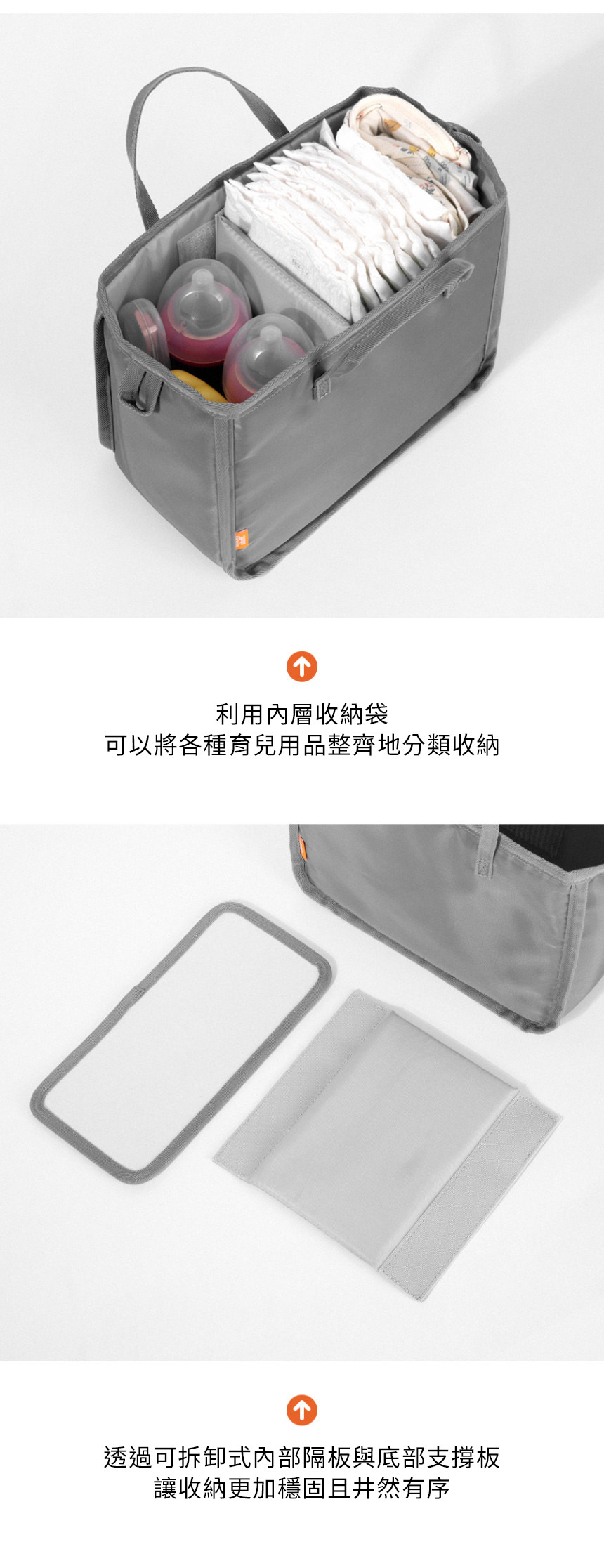 • 上下分層:獨立空間設計,育兒用品輕鬆分類收納