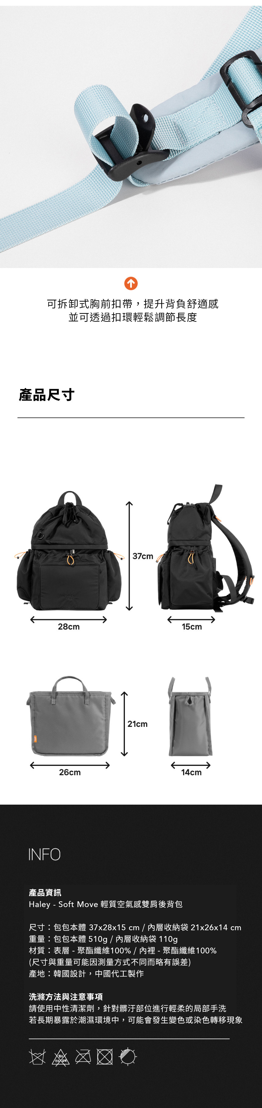 • 生活保養: 嚴選防潑水布料,日常保養輕鬆維護