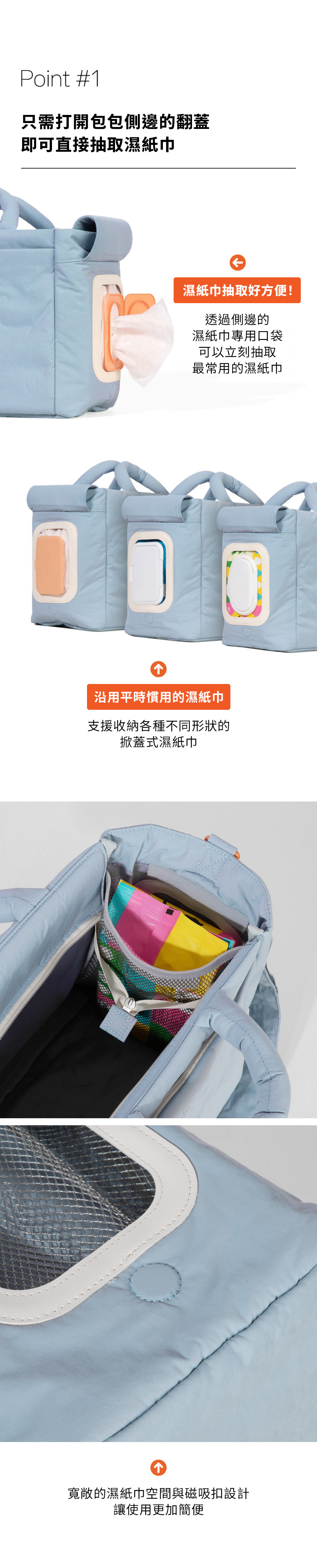 • 一秒快取:側邊專屬開口,可直接抽取濕紙巾