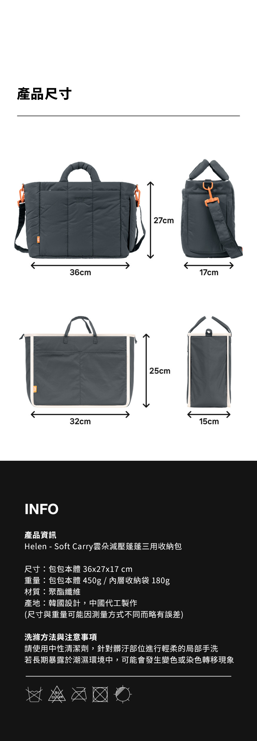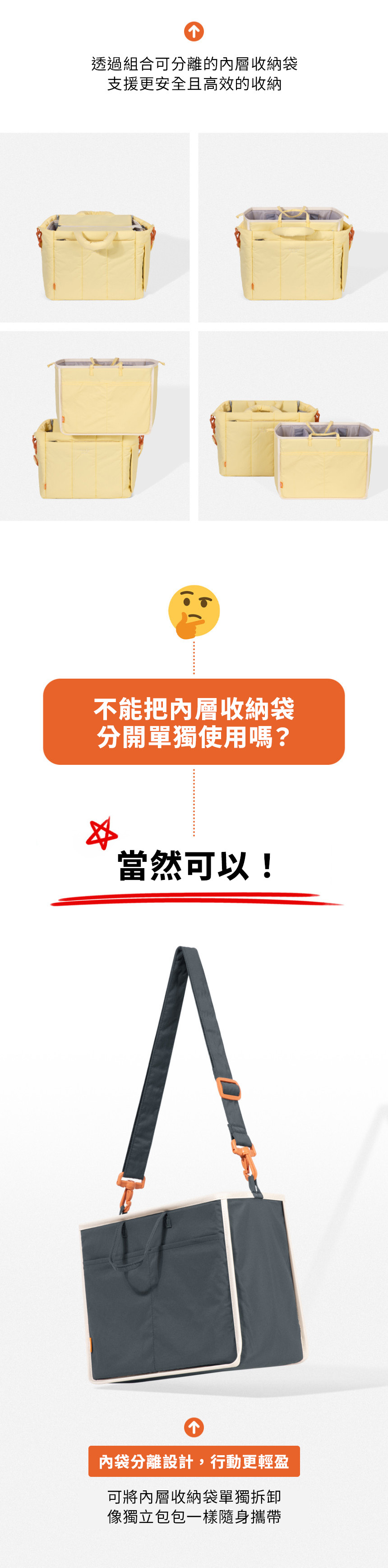 • 靈活拆分:內外包可分開獨立使用,滿足不同收納需求