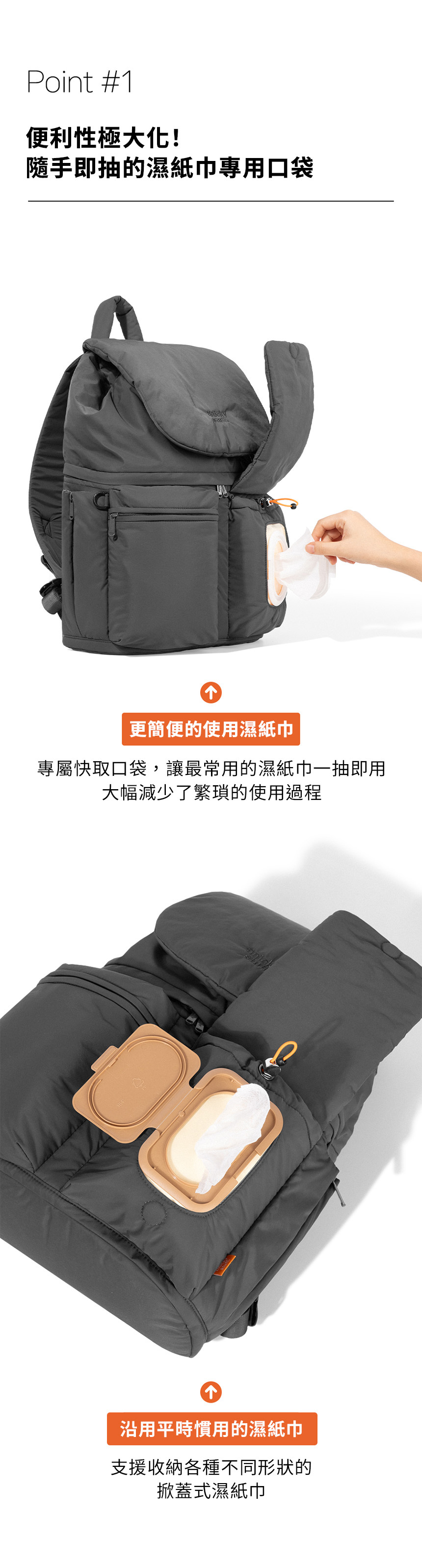 • 一秒快取:側邊專屬開口,可直接抽取濕紙巾