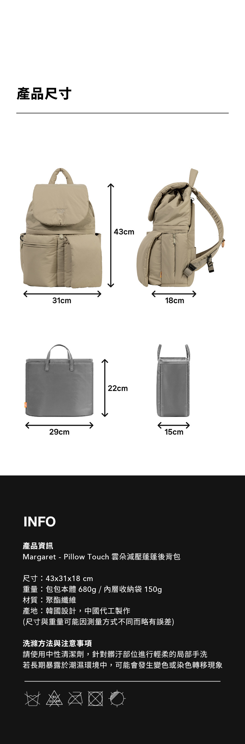 • 生活保養: 嚴選防潑水布料,日常保養輕鬆維護
