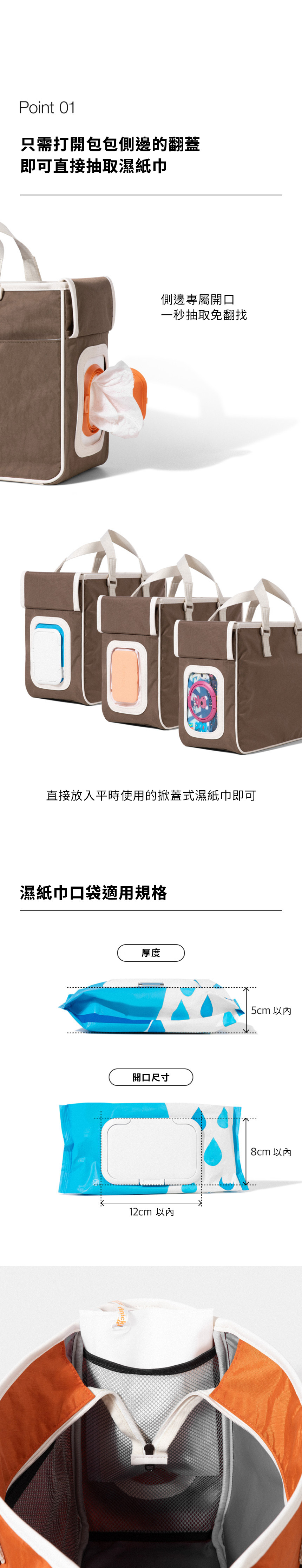 • 一秒快取:側邊專屬開口,可直接抽取濕紙巾