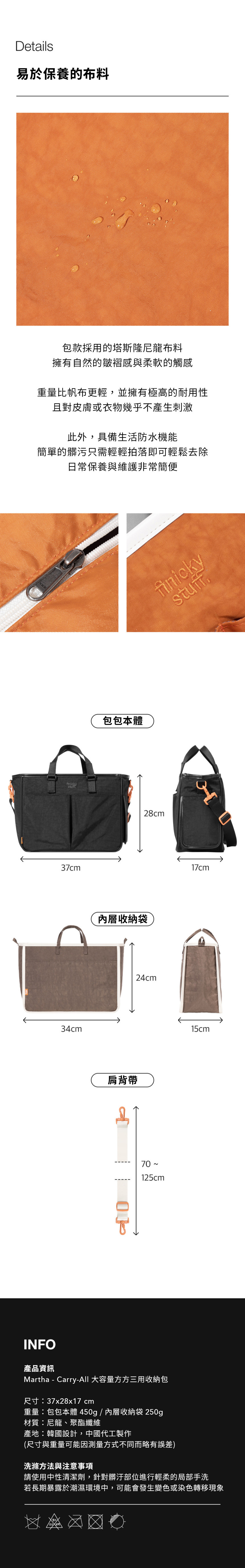 • 靈活拆分:內外包可分開獨立使用,滿足不同收納需求